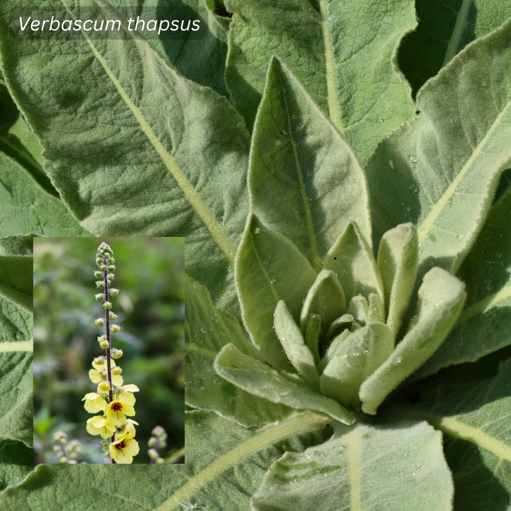 Great Mullein is a biennial plant. First year forms a rosette of large, soft, woolly grey-green leaves. Second year produces a tall flower spike up to 2 meters covered with yellow flowers. Entire plant is covered in soft hairs.