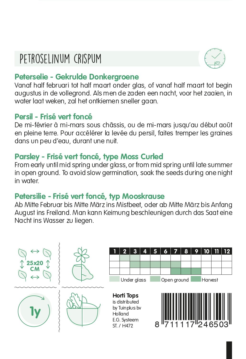 Weight: ca. 5 gram | Botanical: Petroselinum crispum | Type: Open-pollinated | Origin: Netherlands