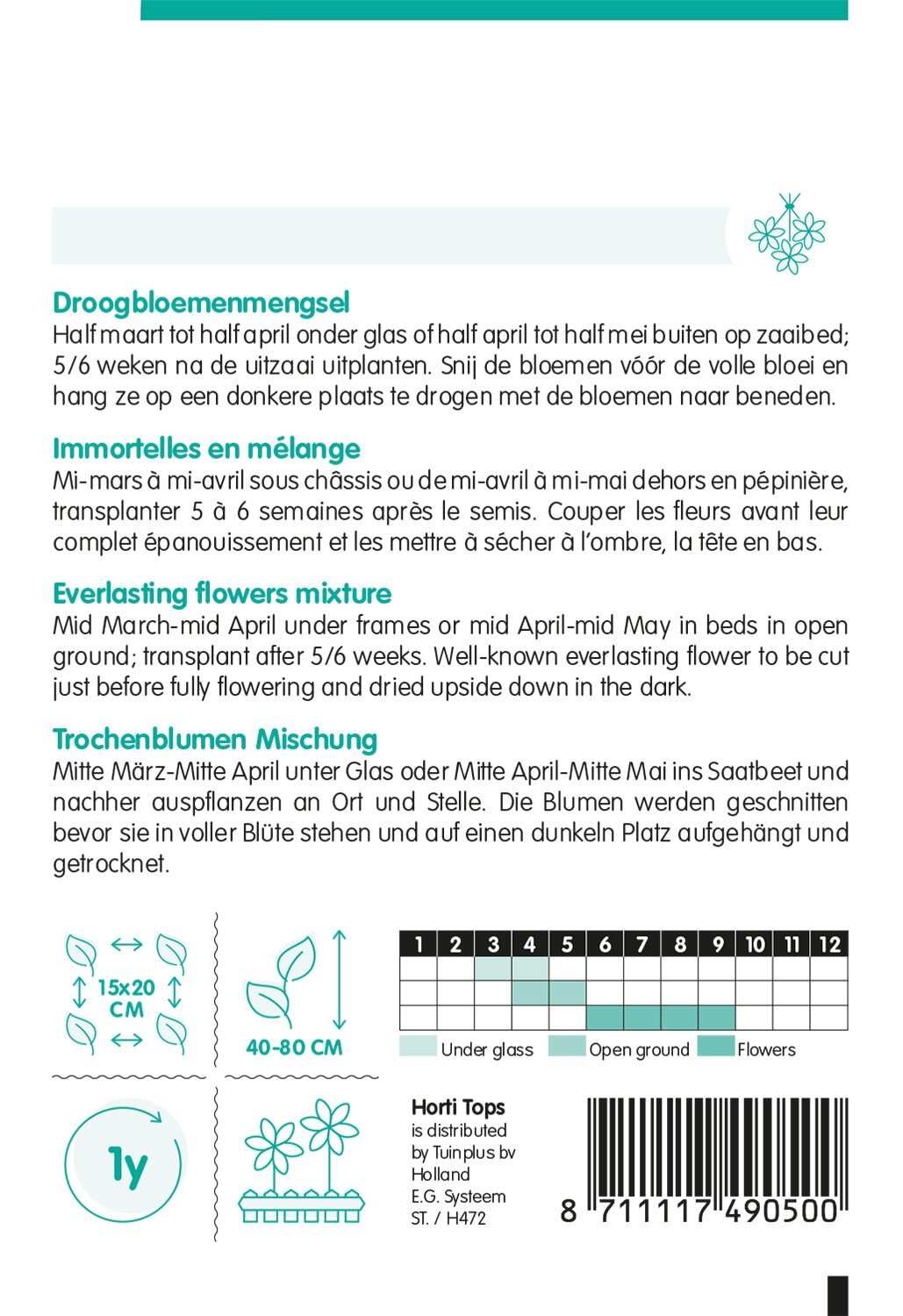 Så under glass fra mars til slutten av april eller utendørs i såbed fra midten av april til slutten av mai. Plant ut etter 5/6 uker. Hagekosmos er