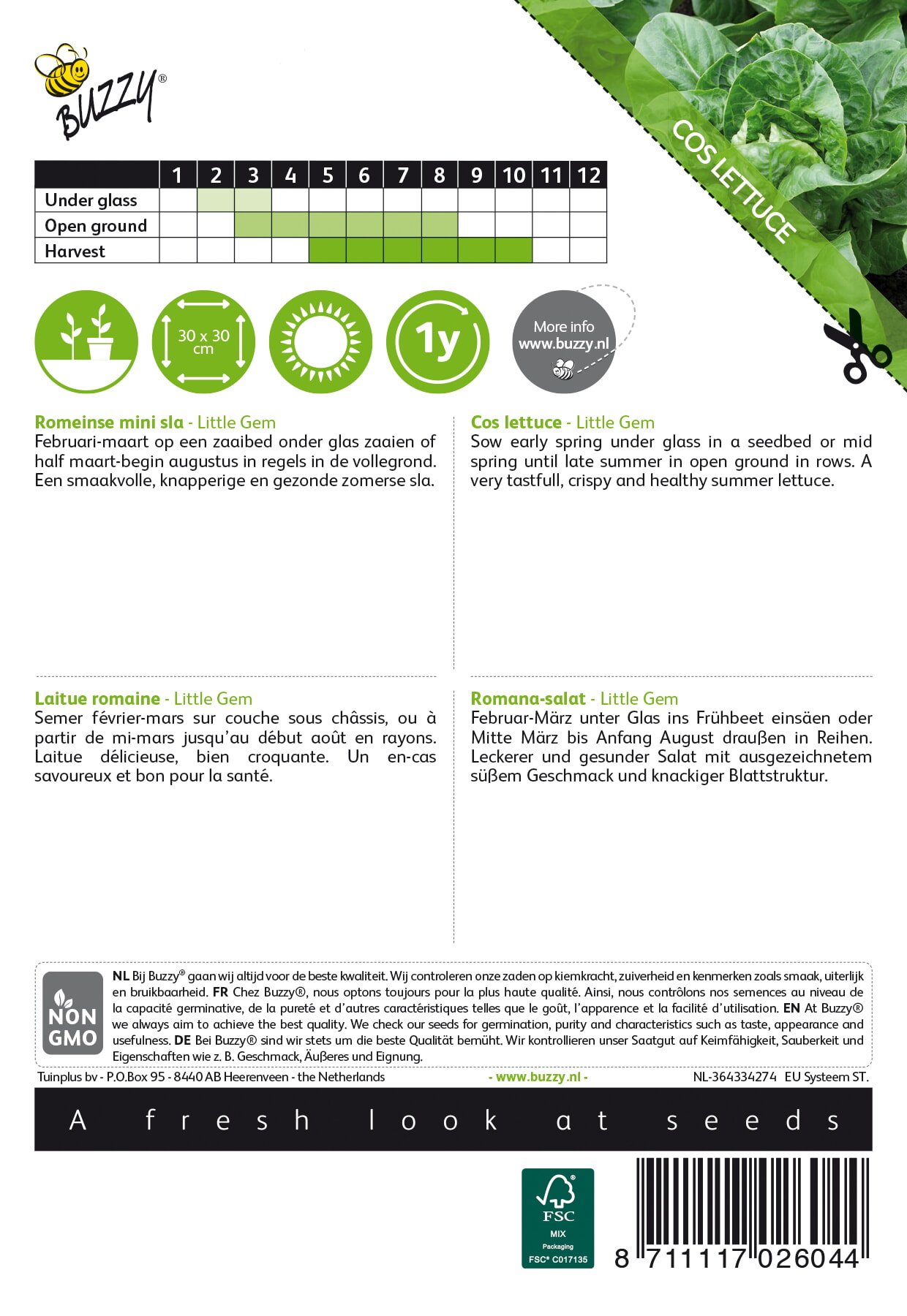 Weight: ca. 3 gram | Botanical: Lactuca sativa | Type: Open-pollinated | Origin: Netherlands