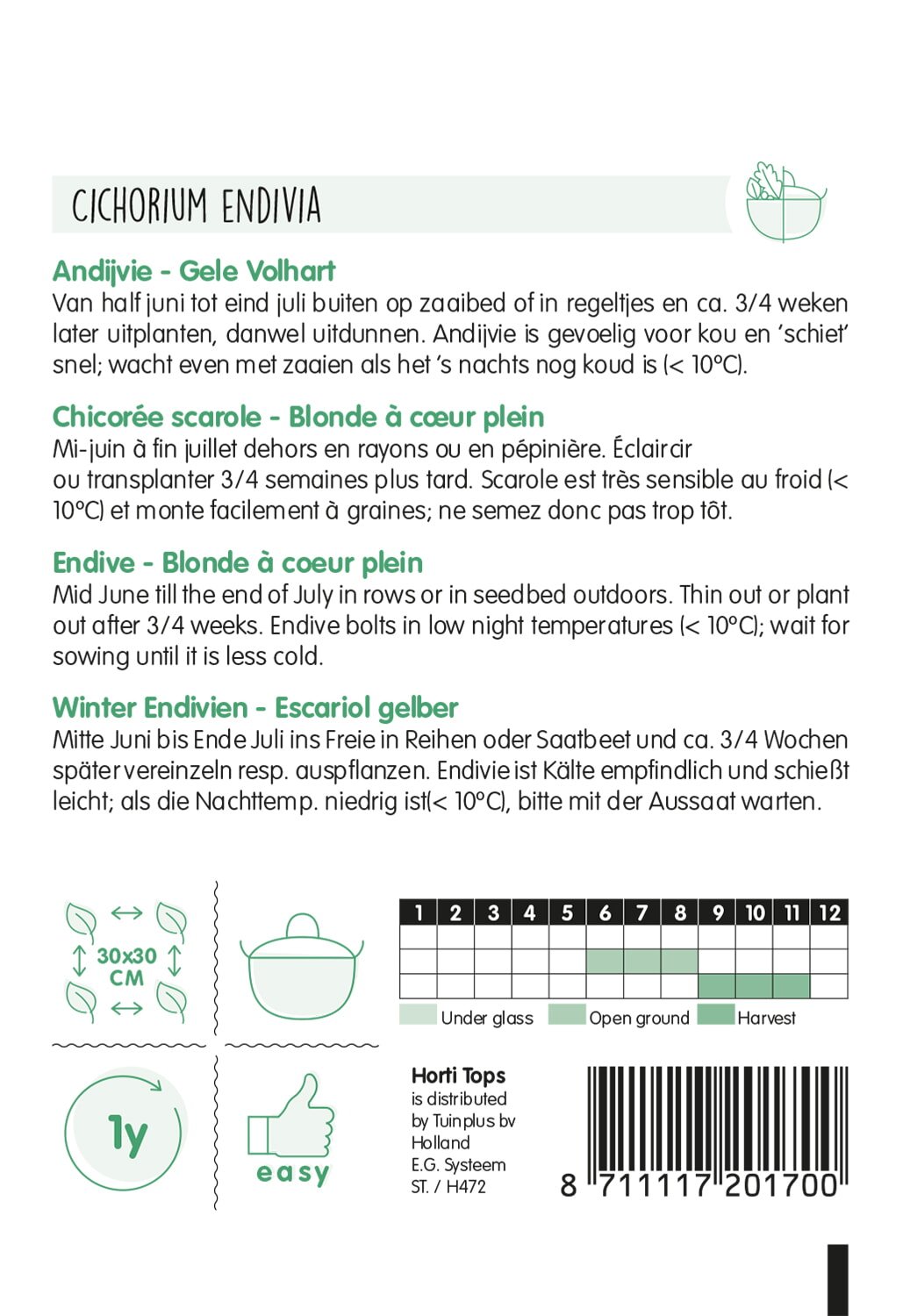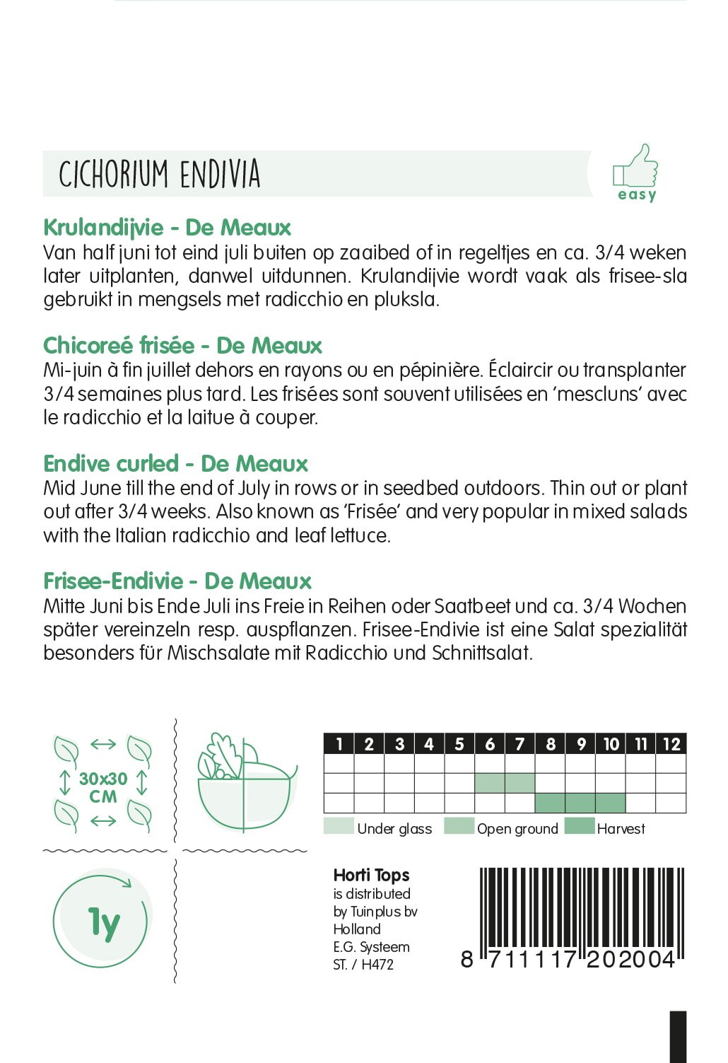 Weight: ca. 3 gram | Botanical: Cichorium endivia | Type: Open-pollinated | Origin: Netherlands