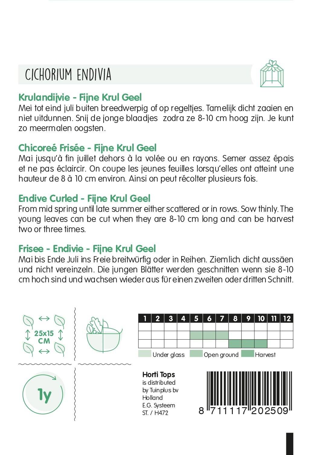 Weight: ca. 3 gram   |   Botanical: Cichorium endivia   |   Type: Open-pollinated   |   Origin: Netherlands