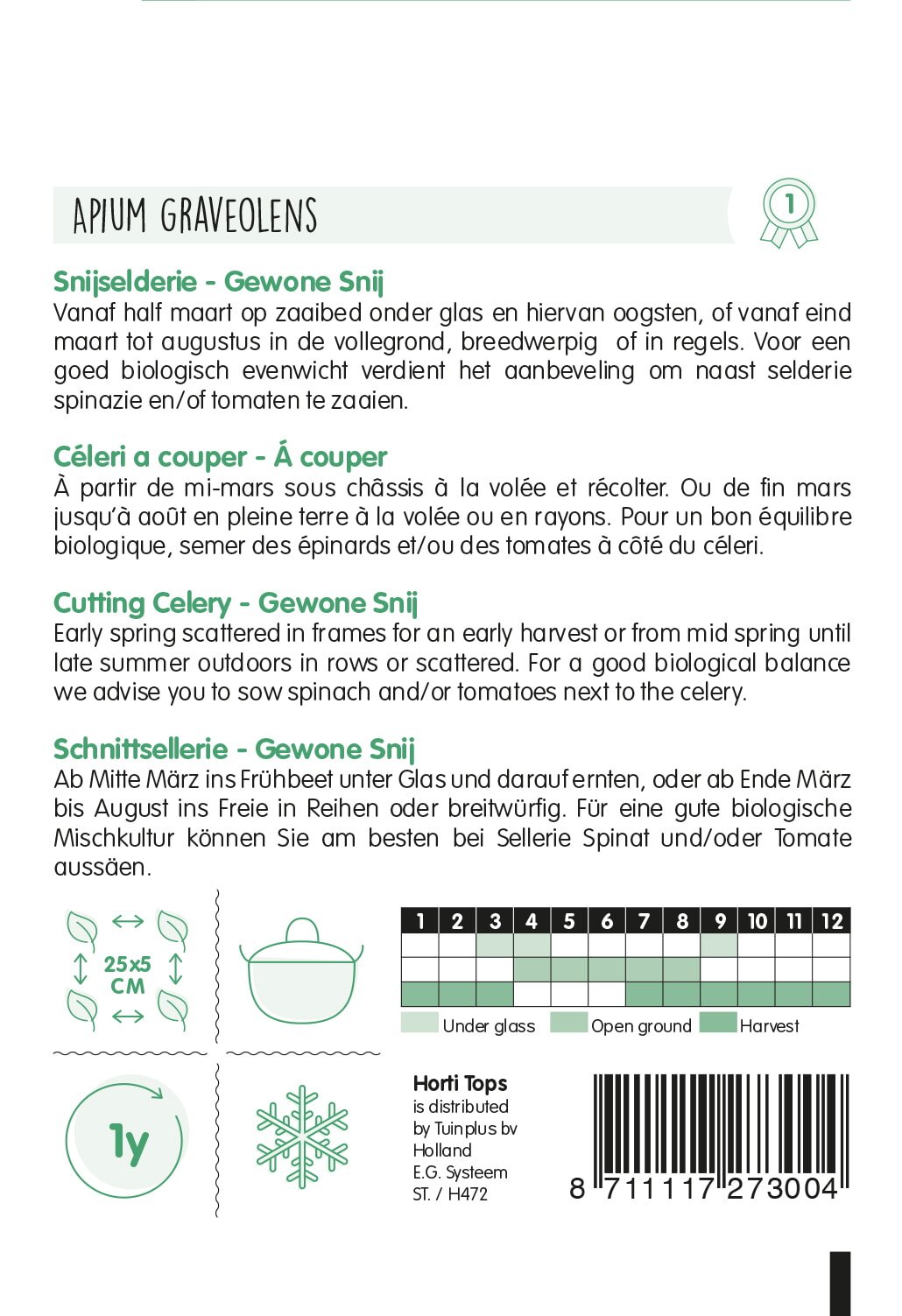 Celery For Cutting/Soup Celery (Apium graveolens) is a nutritious vegetable for your garden. Sow indoors from March to April En September, or outdoors from April to August. Expected height: 35 cm.