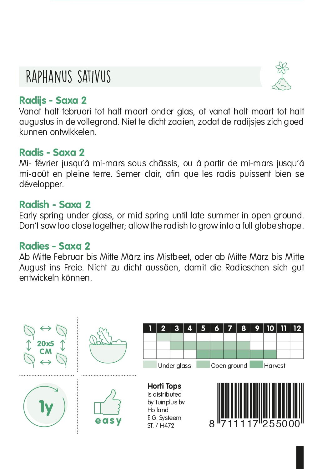 Weight: ca. 10 gram | Botanical: Raphanus sativus | Type: Open-pollinated | Origin: Netherlands
