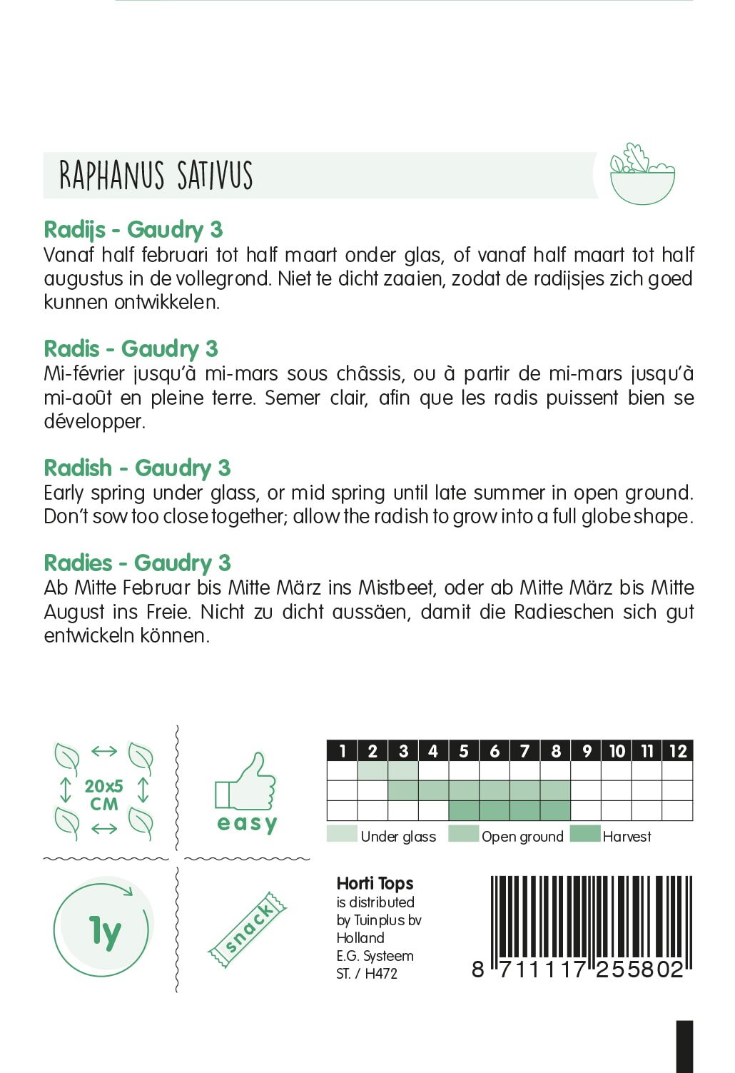 Weight: ca. 10 gram | Botanical: Raphanus sativus | Type: Open-pollinated | Origin: Netherlands